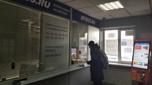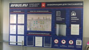 В помещении автокассы в Южно-Сахалинска уже первый этап по приведению внешнего вида кассы к единому стилю и работы касс к единому стандарту принятому в «РФБАС». Обновлена информация для пассажиров, изменен внешний вид кассовых точек, установлено современное кассовое оборудование. Информационный стенд оформлен с учетом проведенной реконструкции привокзальной площади и где на графической схеме указаны места посадки на автобусы. Теперь пассажиру гораздо проще найти свой автобус, т.к. на билете так же дополнительно указывается номер точки отправления — платформы.